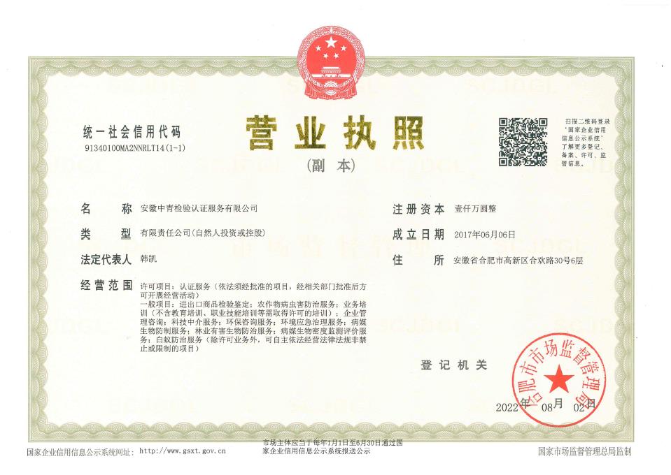 安徽中青檢驗認(rèn)證服務(wù)有限公司